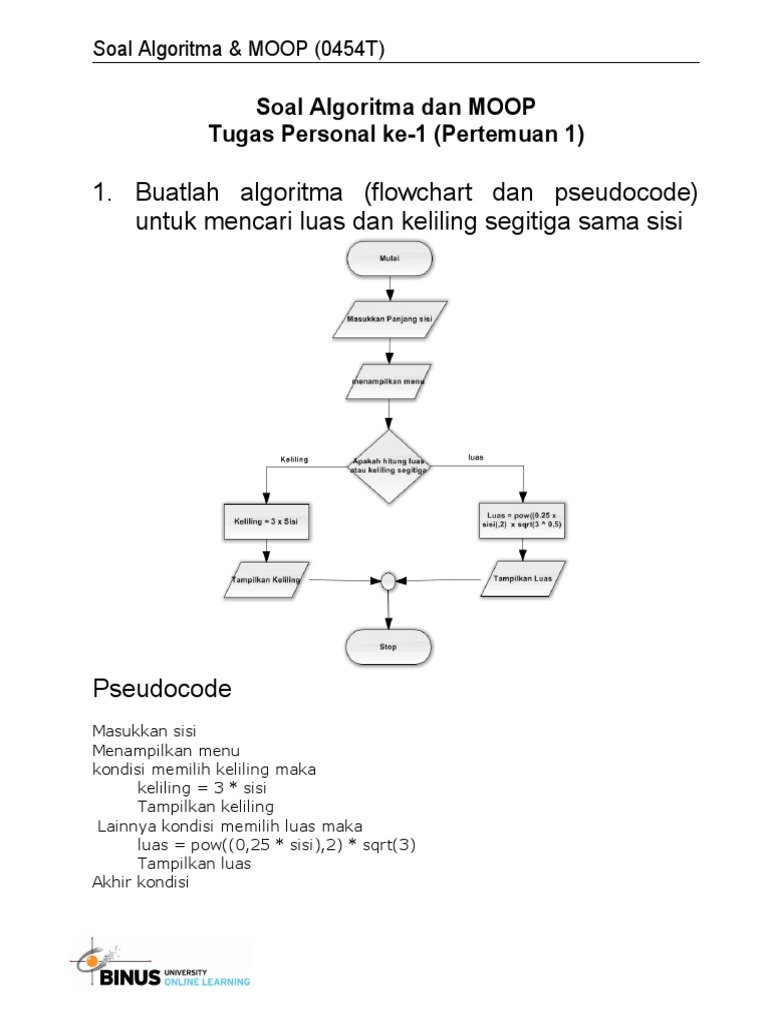 Terciptanya sebuah rancangan menghitung luas dan keliling bangun datar segitiga dengan tahapan narasi, pseudocode, dan flowchart. Setelah sebelumnya kita sudah membuat contoh flowchart untuk menghitung luas segitiga, kali ini akan saya bagikan flowchart untuk menghitung luas lingkaran.jika kita ingin membuat program menghitung luas lingkaran maka termasuk dalam algoritma sekuensial dimana instruksi dijalankan secara berurutan dari atas kebawah. Tugas algoritma dan pemrograman ii kelompok 2: Sebelum lebih jauh pembahasannya, kalian harus tau dulu tentang segitiga. Gambar flowchart keliling segitiga mulai masukkan luas alas dan tinggi hitung keliling segitiga k = sisi a + sisi b + sisi c masukkan krliling segitiga selesai 7. Narasi dalam aplikasi rumus luas dan keliling segitiga ini dibutuhkan unit masukan (input), unit proses, dan unit keluaran (output). Di artikel sebelumnya saya sudah menyajikan algoritma pseudocode untuk menghitung luas lingkaran segitiga dan juga persegi panjang masih mengenai algoritma di artikel kali ini saya. Silahkan berikan komentar kalian dibawah ini, terimakasih. Terciptanya perangkat lunak menghitung luas dan keliling bangun datar segitiga berbasis pemrograman php 4. Di artikel sebelumnya saya sudah menyajikan algoritma pseudocode untuk menghitung luas lingkaran, segitiga dan juga persegi panjang, masih mengenai algoritma, di artikel kali ini saya akan menyajikan algoritma flowchart untuk perhitungan yaitu menghitung luas lingkaram, luas segitiga dan luas persegi panjang beserta menampilkan hasilnya. Bagaimana cara menghitung luas persegi panjang 3. Masukan nilai alas (a) dan nilai tinggi segitiga (t) maka untuk menghitung luas digunakan rumus alas dengan tinggi yang sudah ditentukan; Menghitung luas segitiga deskripsi :